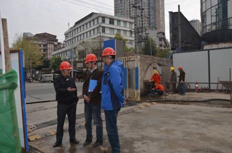一年之計在于春,開春后工程全面啟動,安全工作備受關(guān)注。3月19日,省地礦局楊茂華局長、祝世強副局長帶領(lǐng)局技安處處長李躍林、經(jīng)管處處長李廷強、局工會主席李健等到我院承擔的鹽道街出版大廈基坑項目檢查指導安全工作。