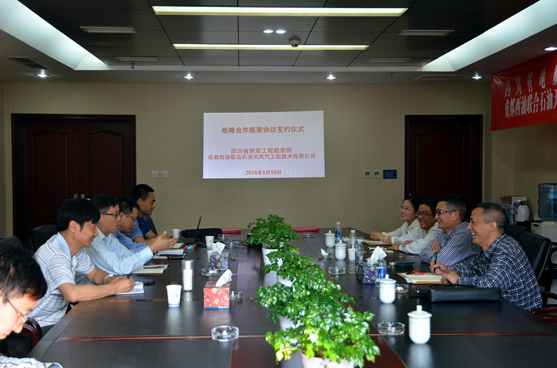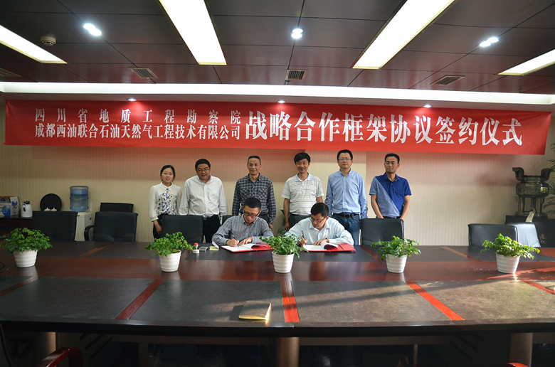 5月10日,在我院321會議室舉行了四川省地質工程勘察院與成都西油聯合石油天然氣工程技術有限公司戰略合作框架協議簽署儀式。院長安世澤、黨委書記陽光輝、水文地質工程公司總經理張恒,成都西油聯合石油天然氣工程技術有限公司總裁牟德剛、技術總監廖忠會等出席了簽約儀式。