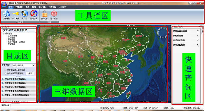 地質環境風險性圖形庫系統分層構建了管道基本數據、基礎地理、地質環境、地質災害等6大類、24小類、360余萬條數據的數據庫,以及三維場景、三維模型的建設。“所有的數據達到了TB級,而一個縣的地災詳查成果圖件也不超過500MB。”水文地質工程公司信息技術室主任唐僑說道。