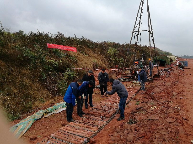 隨后,錢江澎、劉宗祥一行對項目2018年先期啟動塊的四個鉆孔進行了質量檢查。通過對現場鉆探點的全面檢查,錢總強調一是要高度重視生產施工過程的安全問題,加強項目規(guī)范化管理;二是在野外調查過程中要確定填圖分組、分段標志,統(tǒng)一風化程度判別標志;三是鉆探工作需標準化編錄格式,及時采集巖土樣,同時對特殊巖芯樣可采用特寫、小視頻記錄方式保存。