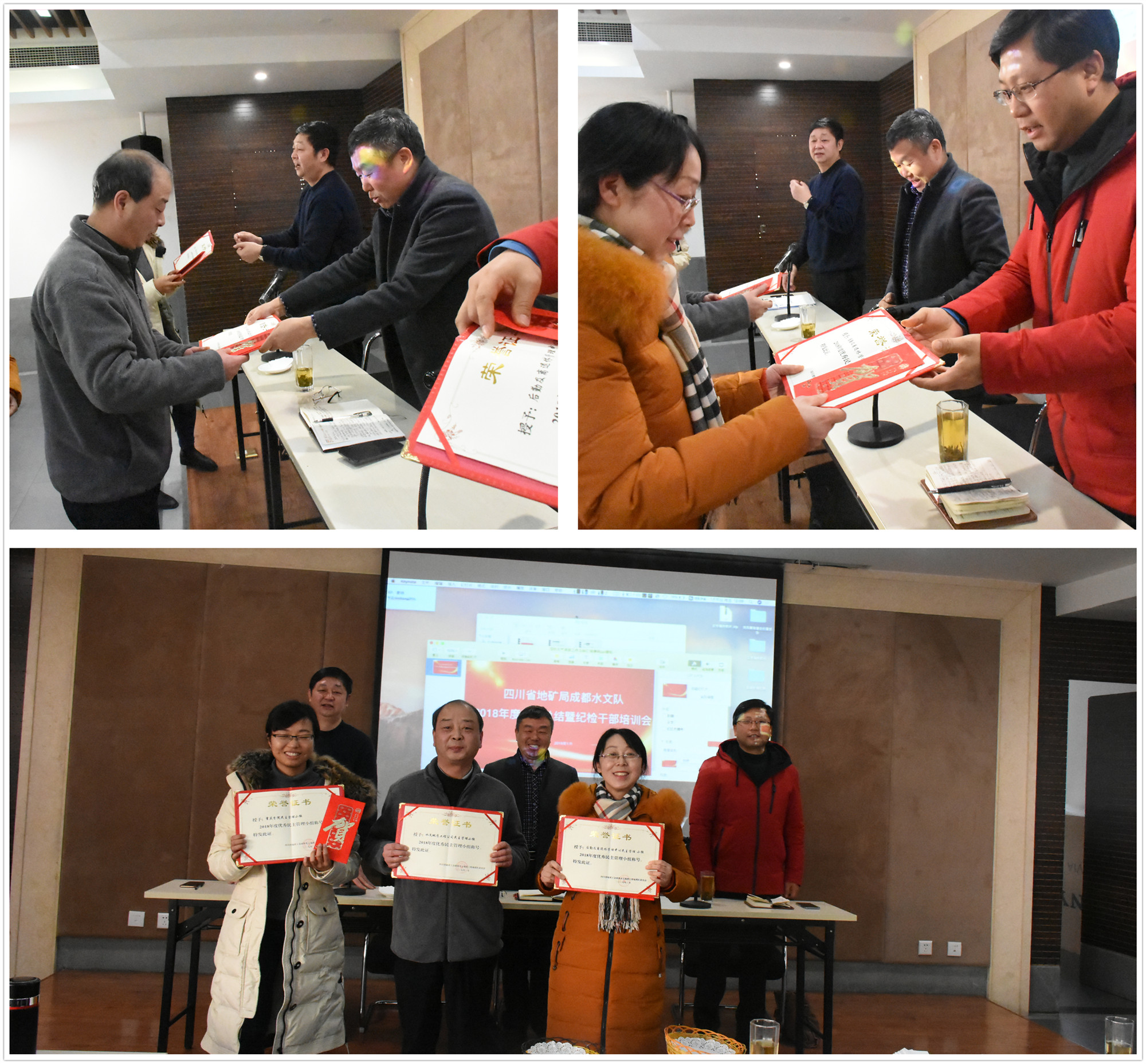 廖華成主席宣讀了2018年度優(yōu)秀民主管理小組的表彰決定, 其中水文地質(zhì)工程公司、重慶分院、后勤及離退休管理中心榮獲優(yōu)秀民主管理小組的榮譽(yù)稱號(hào),黨委書(shū)記謝大軍、副隊(duì)長(zhǎng)張宏、工會(huì)主席廖華成為獲獎(jiǎng)代表頒獎(jiǎng)。