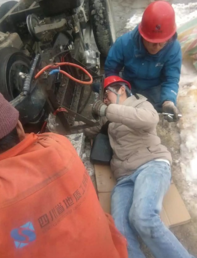 項目經(jīng)理馬天華立即召開緊急會議,討論解決方案。由于項目工地距離縣城較遠(yuǎn),近距離的鄉(xiāng)鎮(zhèn)又沒有維修條件,無論是重新購置設(shè)備,還是前往縣城維修設(shè)備或者請維修師傅前來,都至少要耽誤一周的工期。為確保項目順利開工,項目部成員馬天華、唐爽、李博等人討論決定,對已壞的三輪車進(jìn)行拆解,取下能用的柴油機及零件組裝到同一臺三輪車上。他們通過網(wǎng)上查閱資料,電話咨詢等,克服了工地現(xiàn)場零件缺失、材料不足的困難,在冰天雪地中完成了組裝任務(wù),最終使其中一輛三輪車實現(xiàn)運轉(zhuǎn),可以勝任硐內(nèi)的棄渣轉(zhuǎn)運工作。