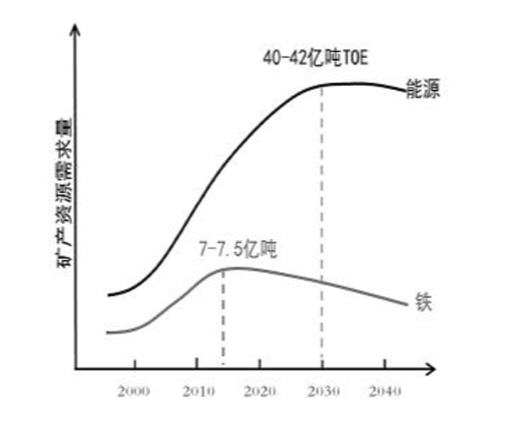 王安建教授介紹,中國(guó)進(jìn)入工業(yè)化中期轉(zhuǎn)型調(diào)整期,重要大宗礦產(chǎn)資源需求還在緩慢增長(zhǎng), 將在2025年前后陸續(xù)達(dá)到頂點(diǎn)。盡管資源需求增速放緩,但是資源需求仍將處于高位運(yùn)行,資源需求總量仍然巨大。